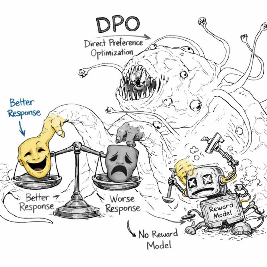 DPO 是一種將「人類偏好對齊 (Alignment)」視為「分類問題」而非「強化學習問題」的方法. 它在 2023 年由 Stanford 團隊提出 [arxiv], 迅速成為微調 LLM (如 Llama-3, Mistral) 的主流方法